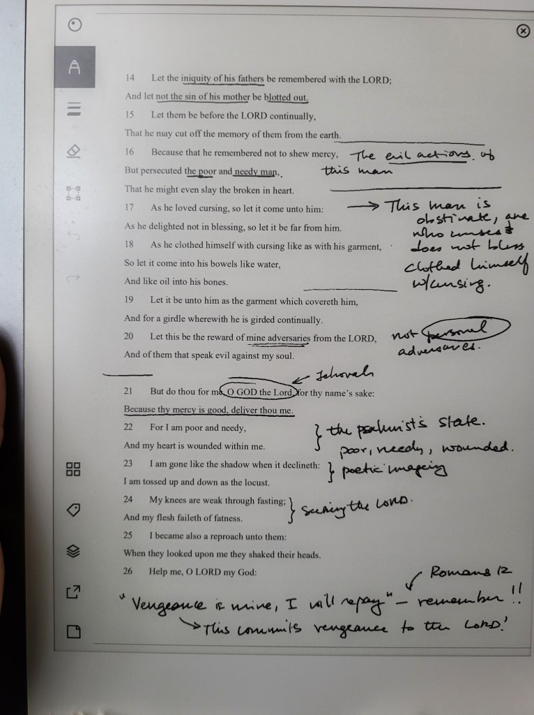 I have a tablet (Surface Pro 9) and a phone (ZFold 3) that I read and takes notes on (both support a stylus and inking). Besides the fact that they are not as satisfying to write on, they also are filled with temptations and distractions. Notifications come in and I am tempted to open them. When I get distracted in my mind, I am tempted to open up the browser, and chase some sort of rabbit trail.
